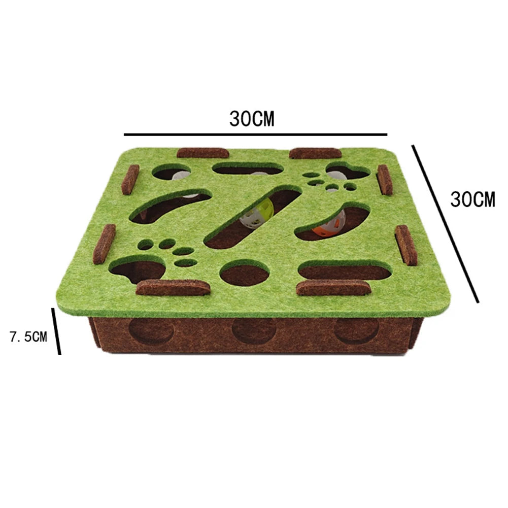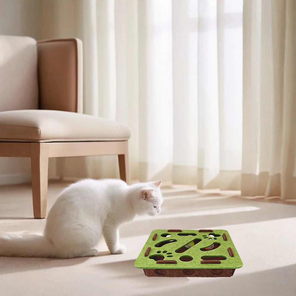 Challenge your cat's hunting instincts with this engaging felt puzzle box toy. Designed to provide mental stimulation and physical exercise, this interactive toy features hidden compartments and a rolling ball that encourages your cat to paw, hunt, and problem-solve for hours of entertainment.